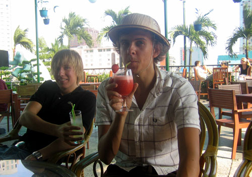 - "Last night out, original Singapore Slings in Long Bar"